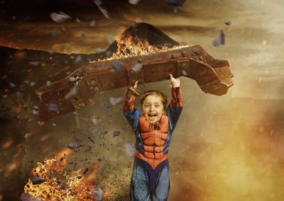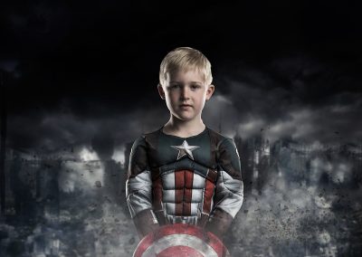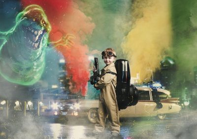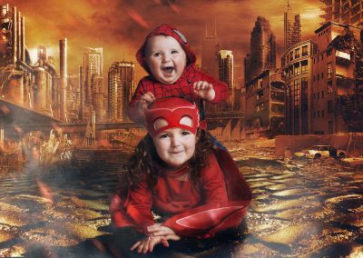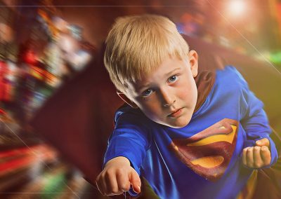 On arrival we usually start with our version of a green screen to begin capturing your images. This helps build up confidence particularly with younger children. Once this is complete we can then get some action shots on some of our super cool backgrounds and incorporate the unique props that have been designed and built for us.